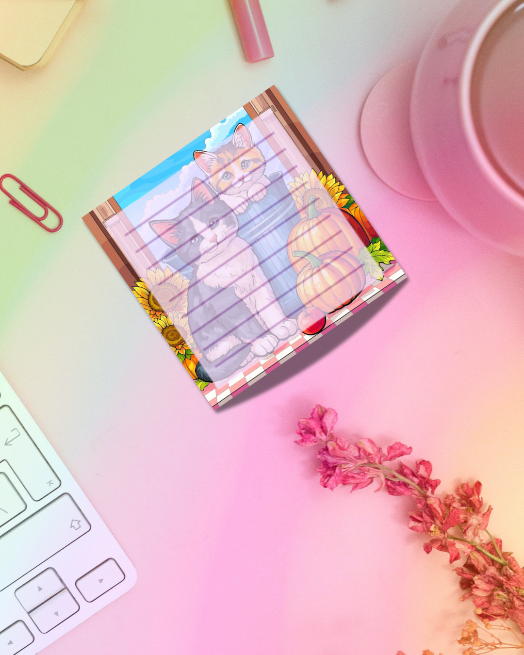 Pumpkin Cats Notepad 2.5"x2.5" 50 Pages Aesthetic Cute Stationery Gift